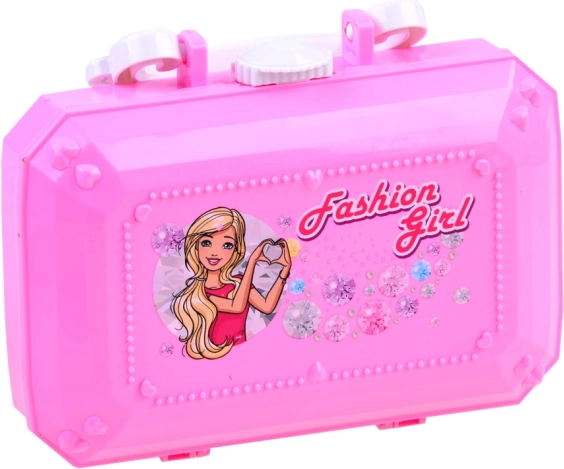 Die praktische Kunststofftruhe mit Spiegel bewahrt Zubehör und fertige Schmuckstücke auf und ist ideal für unterwegs.
