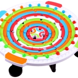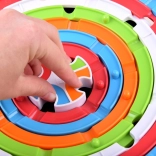 Das Spiel ist aus Kunststoff gefertigt und hat Kreise in verschiedenen leuchtenden Farben (blau, grün, rot, orange), die ansprechend sind und zum Spielen motivieren.