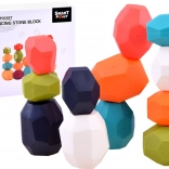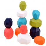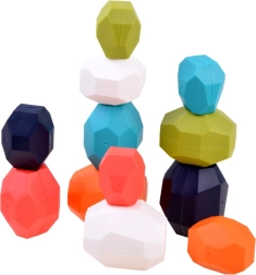 Dank der flachen Seiten der Steine kombinieren Kinder verschiedene Stapelkombinationen.