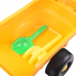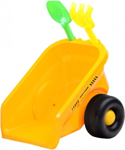 Der abnehmbare Anhänger verfügt über Halterungen zur Aufbewahrung der mitgelieferten kleinen Rechen und Schaufel und unterstützt fantasievolles Spielen auf der Baustelle oder im Sand.