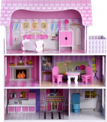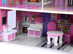 Das rosaviolette Holz-Puppenhaus begeistert mit detailreichen Illustrationen und einer offenen Architektur für einfachen Zugang zu jedem Raum. Drei Etagen bieten fünf voll ausgestattete Bereiche sowie eine Terrasse und laden zu langen Stunden fantasievollen Spiels ein. Dank der stabilen Holzkonstruktion und durchdachter Proportionen ist es das ideale Zentrum des Kinderzimmers.