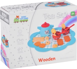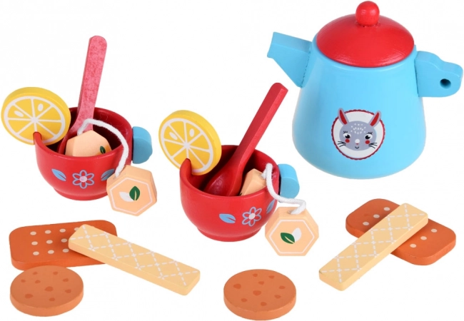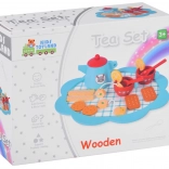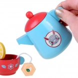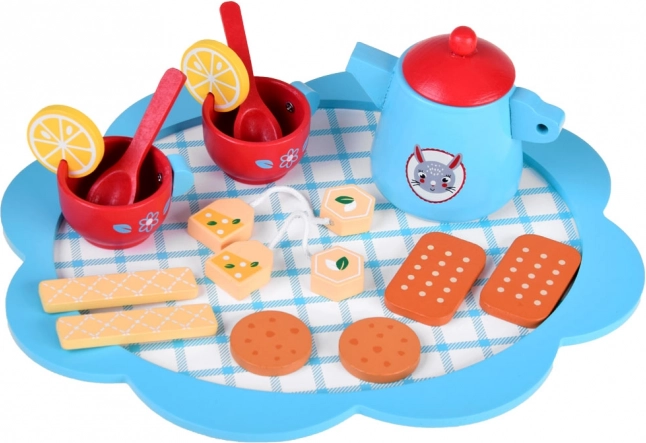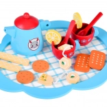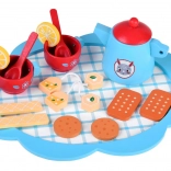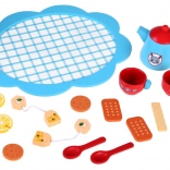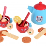 Dieses elegante Teeservice aus massivem Holz begeistert alle kleinen Gastgeberinnen und Gastgeber. Zarte Blau- und Rottöne, niedliche Motive und umfangreiches Zubehör fördern kreatives Spielen, soziale Kompetenzen und Sinneswahrnehmung. Kinder können Tee mit Zitrone servieren, Kekse anbieten und Tischmanieren üben.