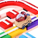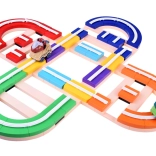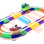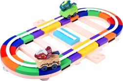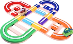 Die variable Strecke aus 143 bunten Teilen ermöglicht Geraden, Kurven und sogar vertikale Abschnitte. Die Teile lassen sich einfach zusammenklicken – und schon kann das Rennen starten.
