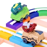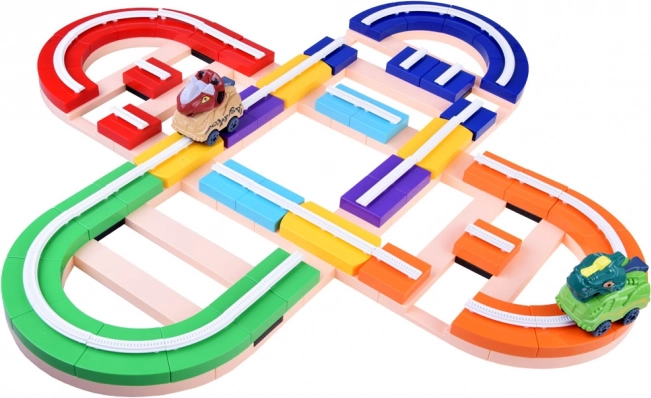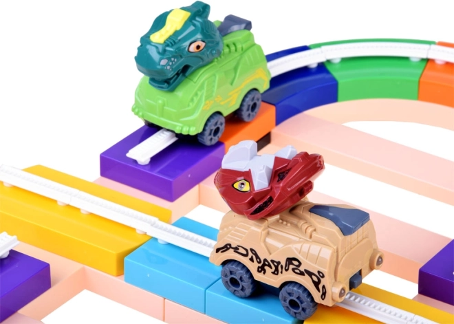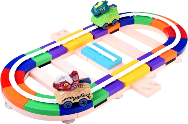Die Dinosaurier-Rennstrecken-Bausatz bietet Kindern die Möglichkeit, die Route nach ihrer Fantasie zu bauen und umzubauen. Die Streckenteile lassen sich einfach zusammenklicken und können auf dem Tisch und an der Wand verlaufen – die mitgelieferten Saugnäpfe halten auf glatten Oberflächen wie Glas. Dank der Führung in den Schienen bewegen sich die Autos sicher horizontal wie vertikal, und durch die richtige Ausrichtung der Blöcke lässt sich die Fahrtrichtung leicht ändern.
