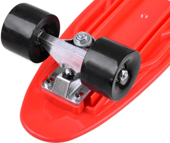 Für eine geschmeidige Fahrt sorgen Aluminium-Trucks, Polyurethan-Rollen 59 × 45 mm mit gutem Grip und ABEC-7-Lager für höhere Geschwindigkeit und sanftes Abrollen auch auf weniger perfektem Untergrund. Die leicht hochgezogene Kicktail erleichtert Kontrolle und Kurvenfahren.
