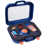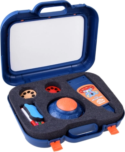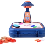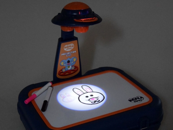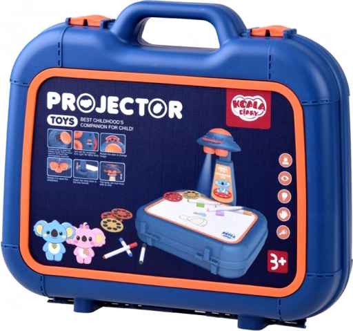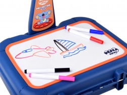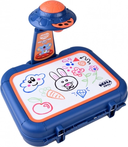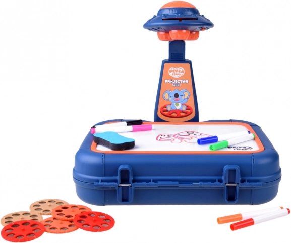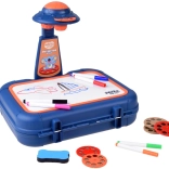 Koffer mit Zeichenfläche, Projektor-Lampe, verstellbarer Arm, 6 Bildschablonen, Schwamm zum Abwischen und 6 Marker.