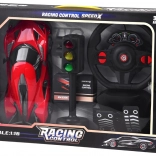 Dieses futuristische Modell mit niedrigem Chassis und Heckspoiler bietet Kindern und Erwachsenen stundenlangen Spaß. Der Controller in Lenkradform liegt hervorragend in der Hand und simuliert in Kombination mit den Pedalen das Fahren sehr realistisch. Die Frontlichter schalten sich bei Vorwärtsfahrt ein und verleihen dem Fahren einen attraktiven Effekt.