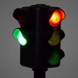 Zum Lieferumfang gehört auch eine Ampel, die die Spiele um Verkehrselemente bereichert und Kindern die Grundlagen der Verkehrsregeln näherbringt. Das Auto besteht aus robustem Kunststoff, hat Hinterradantrieb und eine einstellbare Spur der Vorderräder für stabileres Fahren.