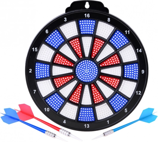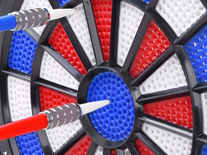Das Dartbrett ist für den Freizeitgebrauch mit roten, blauen und weißen Segmenten für präzises Zielen und Punktesammeln konzipiert.