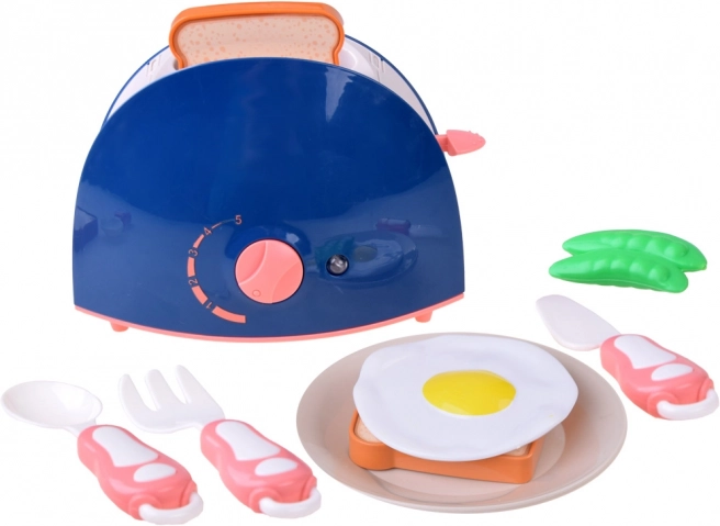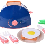 Der Toaster ist mit einem Drehknopf und Hebelmechanismus ausgestattet, die Fantasie anregen und manuelle Geschicklichkeit fördern.