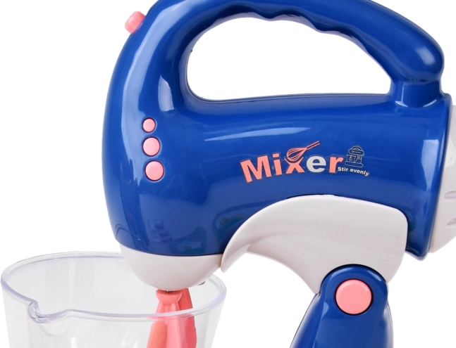 Der Mixer im Set hat ein ergonomisches Design mit einer transparenten Schüssel und realistischen Geräuschen, die echte Küchenerlebnisse imitieren.