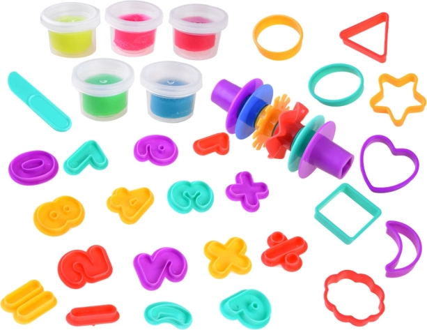 Das kreative Set mit Knetformen bietet eine wunderbare Gelegenheit zur Entwicklung von Kreativität und logischem Denken. Dank der vielfältigen Farbpalette und der unterschiedlichen Formen können Kinder die Welt der Zahlen und Formen entdecken, motorische Fähigkeiten und Fantasie entwickeln.
