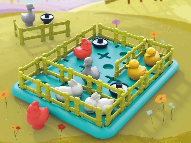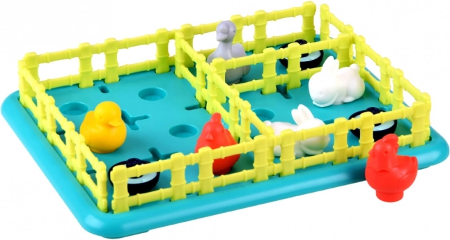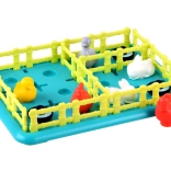 Ein Plastikspielbrett mit hellen Farben von Tieren und Zäunen bietet ein visuell ansprechendes Erlebnis, das die Vorstellungskraft und Kreativität stimuliert.