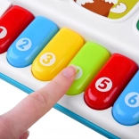 Das Klavier hat acht leuchtende Tasten in verschiedenen Farben, die Kindern helfen, auf spielerische Weise Farben und Zahlen zu lernen.