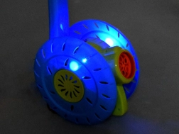 Die Produktion der Blasen wird von fröhlicher Musik und Lichteffekten begleitet.
