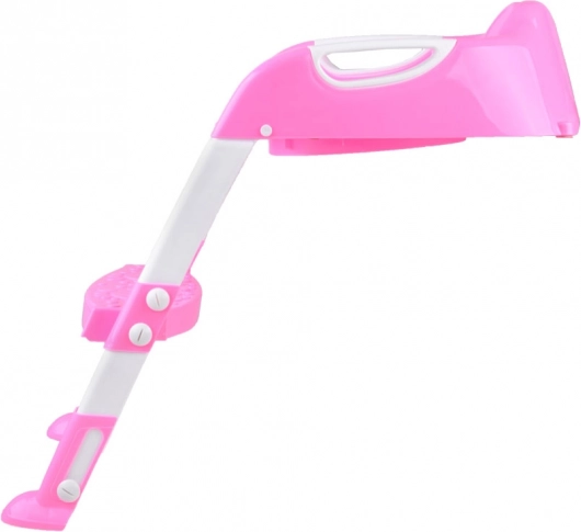 Der Sitz besteht aus hochwertigem Kunststoff, sein Design ist nicht nur durch die Farben, sondern auch durch die Panda-Prägung auf der Rückenlehne ansprechend, was eine freundliche Atmosphäre schafft. Rutschfeste Elemente auf den Stufen sorgen für Sicherheit.