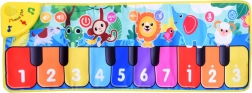 Die Matte funktioniert wie eine einfache Klaviatur mit acht Tönen. Kleine Musiker können eigene Melodien komponieren und Gehör sowie Rhythmusgefühl entwickeln.