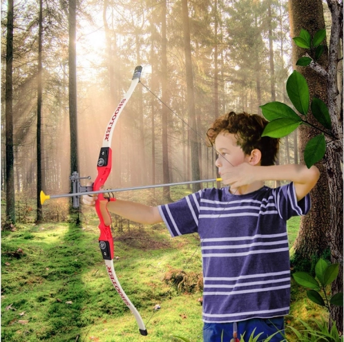 Der leichte Kunststoffbogen mit komfortablem Griff ist auch für kleinere Kinder geeignet – perfekt für die ersten Schritte im Bogenschießen.