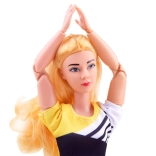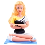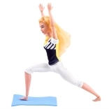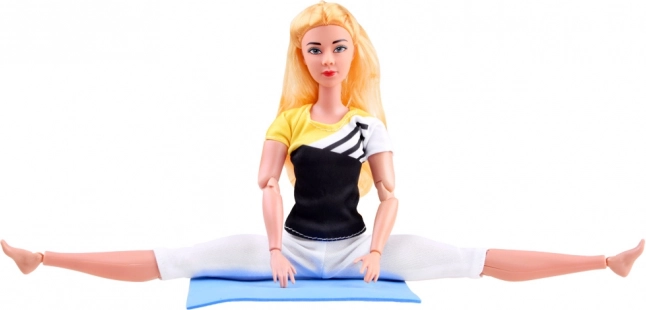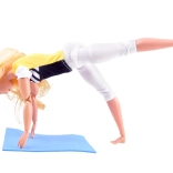Die flexible Puppe mit langen blonden Haaren trägt ein sportliches Set mit elastischen Leggings und Top, damit sie bequem trainieren kann. Die Gelenkkonstruktion ermöglicht realistische Einstellungen von Armen, Beinen und Rumpf, sodass sie Lieblings-Asanas und Gymnastikposen leicht nachahmt.