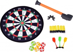 Im Set enthalten: Dartscheibe, 6 Bälle, 3 Wurfpfeile, 6 Schaumstoffgeschosse, Blasrohr und Munitionshalter – auspacken und losspielen.