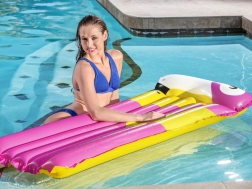 Ein integriertes aufblasbares Kissen stützt Kopf und Nacken für echte Erholung. Die farbenfrohe Sommergrafik mit Vogelmotiv verleiht Ihrem Wasserspaß Stil und gute Laune. Die leichte Konstruktion ermöglicht schnelles Auf- und Abpumpen sowie einfaches Tragen und Verstauen.