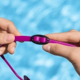 Weiche Silikonauflagen und ein schnell verstellbares Band sorgen für einen sicheren, bequemen und wasserdichten Sitz.