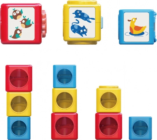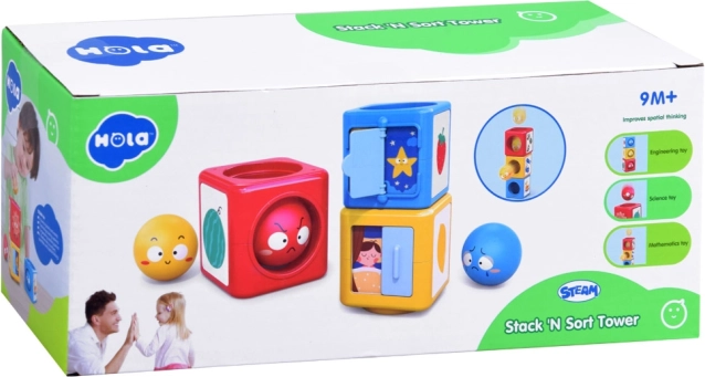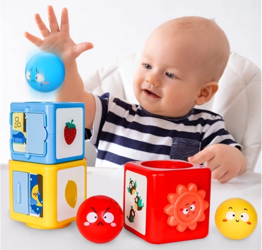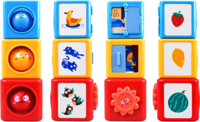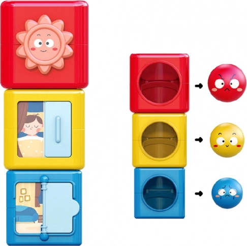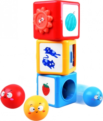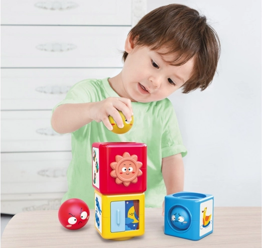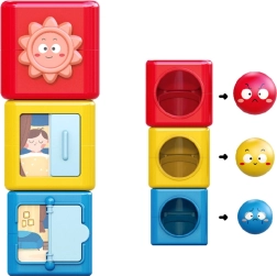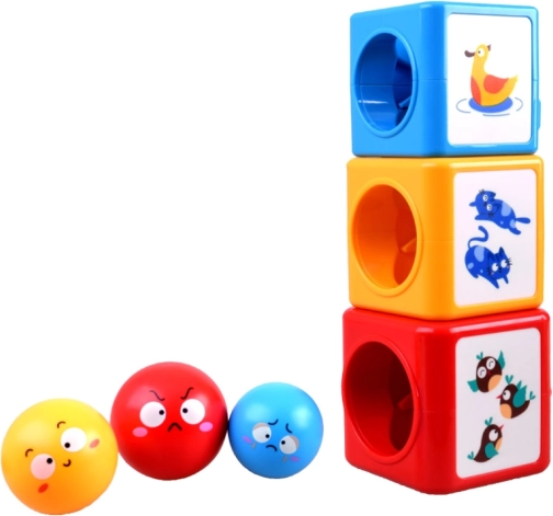 In diesem bunten Bauklötze-Set finden Sie Kugeln und Blöcke, die gestapelt und sortiert werden können. Das Spielzeug lehrt Kinder, Farben zu erkennen, Emotionen zu unterscheiden und die Welt um sie herum durch Spielen zu erkunden. Es hilft, räumliches Denken, analytische Fähigkeiten und Feinmotorik zu entwickeln.