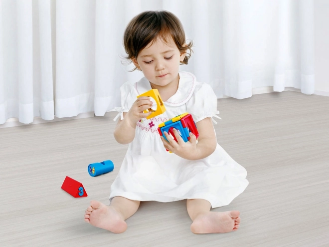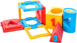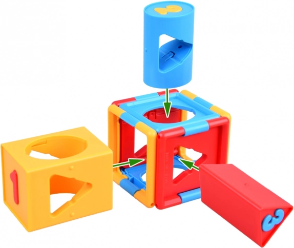 Dank Aktivitäten, die das Einsetzen von Formen in Öffnungen umfassen, hilft der Würfel, die Feinmotorik der Kinder zu entwickeln.