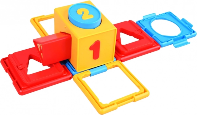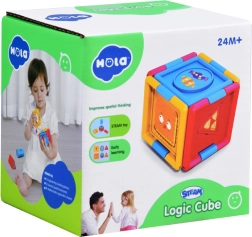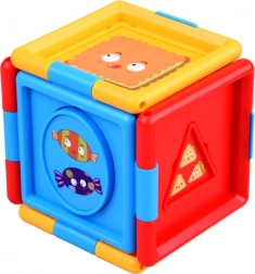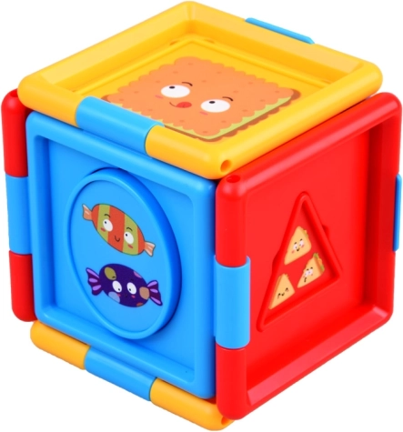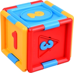 Der Würfel ist mit farbenfrohen Bildern und lebhaften Farben verziert, was seine Attraktivität weiter erhöht und die kindliche Neugier weckt. Er ist aus Kunststoff gefertigt, was seine Haltbarkeit und Sicherheit für kleine Nutzer gewährleistet.