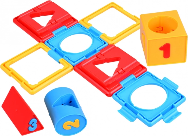 Der Würfel enthält verschiedene Formen und Zahlen, was beim Erlernen grundlegender Formen und Zahlen hilft.