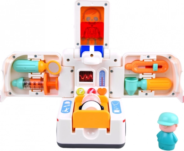 Spezielle medizinische Ausstattung: - EKG-Monitor - Röntgen des Brustkorbs - 3 medizinische Tasten (Herz, Spritze, grünes Fragezeichen) für gesundheitsbezogene Soundeffekte.