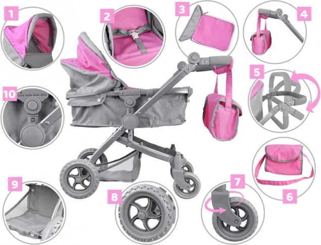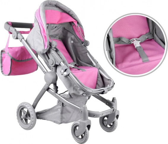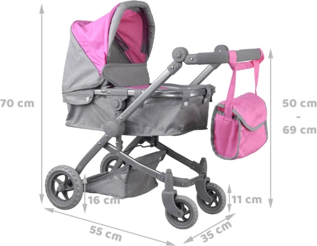 Stilvoller Puppenwagen, der sich in eine Liegewanne oder einen Sportwagen umbauen lässt, für ein realistisches Pflege- und Rollenspiel. Er hat einen leichten Rahmen, schwenkbare Räder, einen verstellbaren Griff und Sicherheitsgurte. Inklusive praktischer Tasche für Zubehör.