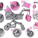 Für maximalen Spielkomfort gibt es eine verstellbare Wanne, einen umlegbaren Griff vorne/hinten und ein klappbares Verdeck. Zwei vordere Schwenkräder und vollgummierte EVA-Räder sorgen für eine sanfte Fahrt drinnen wie draußen. In den geräumigen Korb und die mitgelieferte Tasche passt sämtliches Puppenzubehör.
