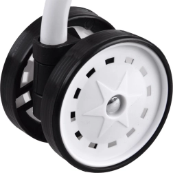 Schwenkbare Doppelräder sorgen für Stabilität und eine ruhige Fahrt auf verschiedenen Untergründen, damit es immer bequem bleibt.
