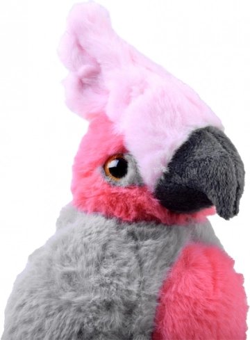 Die authentische grau‑rosa Färbung, der schwarze Schnabel und die typische Federhaube verleihen dem Plüsch-Kakadu ein realistisches Aussehen, das Kinder und Erwachsene sofort verzaubert.