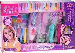 Das Set enthält alles, was man braucht, um schöne Strähnen und Frisuren mit Haar-Kreide zu kreieren.