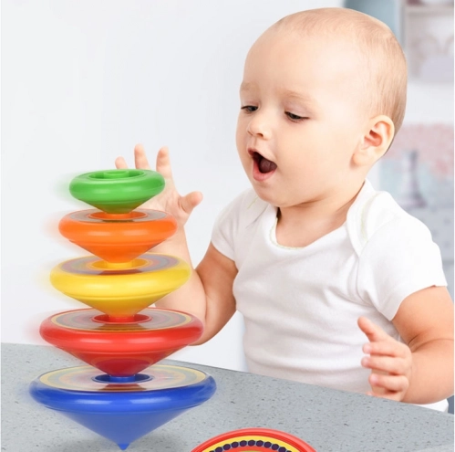Das Beobachten und Steuern der rotierenden Kreisel unterstützt die Feinmotorik, die Hand-Auge-Koordination und die Konzentration bei Vorschulkindern.