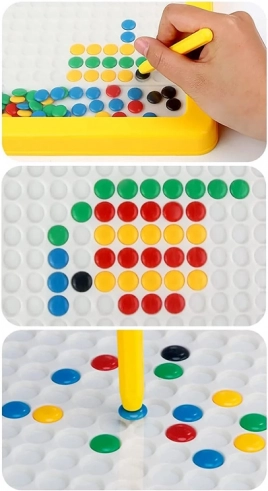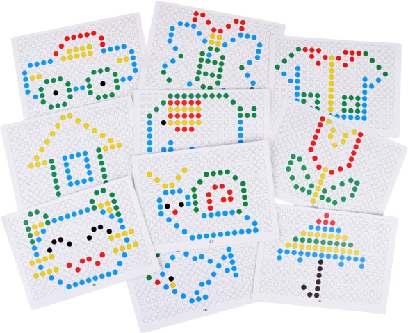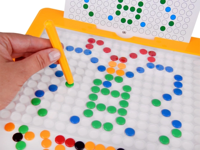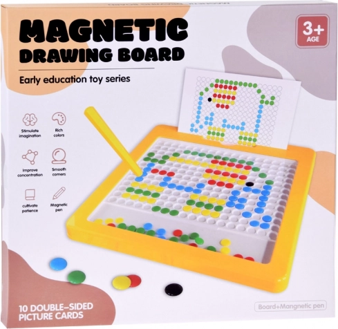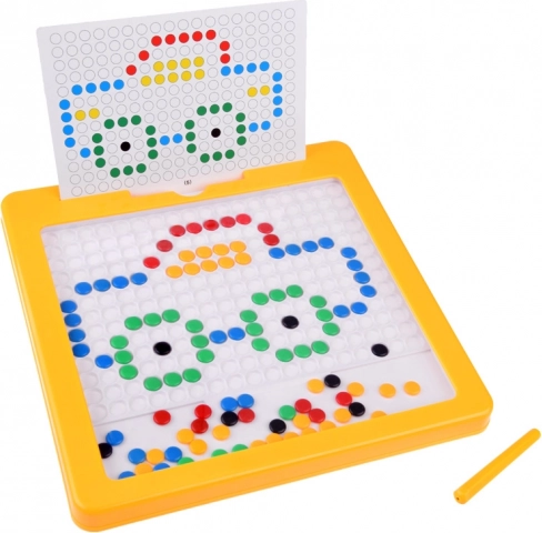 Das pädagogische magnetische Mosaik YOKOMISIADA vereint Spaß und Lernen. Kinder setzen bunte Stifte in das Raster nach Vorlagen (Auto, Schmetterling, Blume u. a.) oder gestalten eigene Bilder. Die magnetische Oberfläche erleichtert die Handhabung und hält die Elemente an Ort und Stelle – für reibungsloses Spielen ohne unnötige Unordnung.