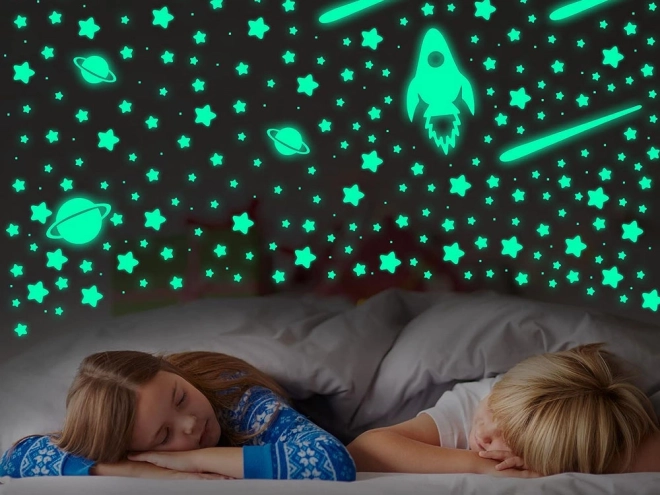 Beleben Sie das Kinderzimmer mit einem Hauch von Weltraumzauber! Dieses Set enthält fluoreszierende Aufkleber, die sich tagsüber „aufladen“ und nachts sanft leuchten, wodurch eine beruhigende Atmosphäre entsteht und das Einschlafen erleichtert wird. Kinder können das Zimmer selbst dekorieren und ihren eigenen Sternenhimmel an Wand, Decke oder Möbeln gestalten.