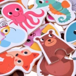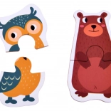Dieses farbenfrohe Set enthält niedliche Tierillustrationen aus Safari, Wald, Hof, Wiese und Wasser. Jedes Motiv besteht aus zwei größeren Teilen, die Kinder leicht halten und zusammensetzen können. Dank des einfachen Prinzips gewinnen Kinder schnell Sicherheit und Freude am Erfolg.