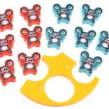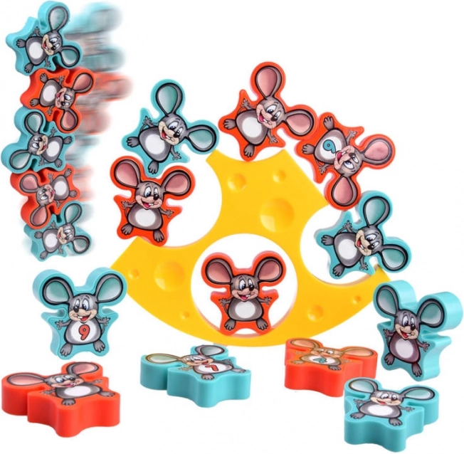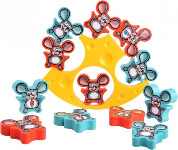 Lege die Mäuse auf die Käsebasis, ohne dass die Konstruktion kippt. Toller Trainingsspaß für Konzentration, Feinmotorik und Geduld.