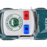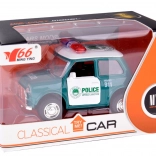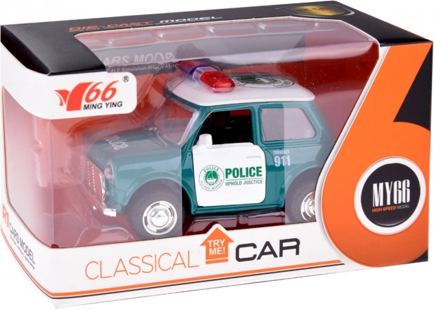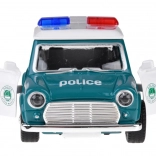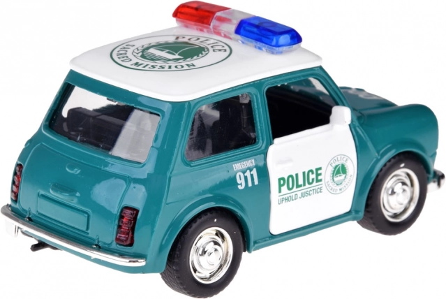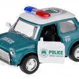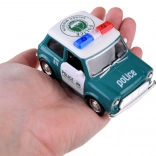 Das Miniatur-Polizeifahrzeug mit klassischem Design bietet realistische Details, darunter rote und blaue Leuchten sowie einen auffälligen Polizeiaufdruck. Die Metallkarosserie und die Gummiräder erhöhen die Robustheit und Haftung – ideal für den täglichen Spielspaß zu Hause und unterwegs.