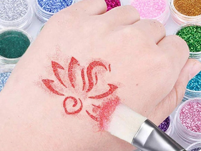 Das Kit enthält alles, was Sie für die Erstellung atemberaubender Glitzertattoos benötigen, mit 24 verschiedenen Glitzerfarben.