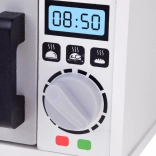 Das Spielzeug ist mit realistischen Details gestaltet, einschließlich digitalem Timer und Drehregler, was interaktives Spielen unterstützt.