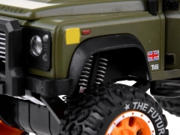 Die Metallkarosserie in Grün ist ergänzt mit Gummireifen und realistischen Lichteffekten.