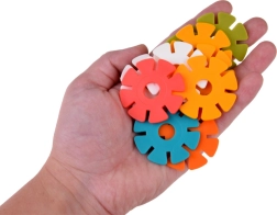 Baukasten Sternchen ist so konzipiert, dass es die Sinne der Kinder anregt: das Sehen durch kräftige Farben und das Fühlen durch die originelle Form. Mit diesem Baukasten können Kinder räumliche Strukturen, Häuser, Brücken, Blumen oder Tiere bauen. Sie können auch Buchstaben des Alphabets oder Zahlen zum Lernen gestalten. Kreative Spielzeuge sind ein großartiger Weg, die Fantasie der Kinder zu unterstützen.