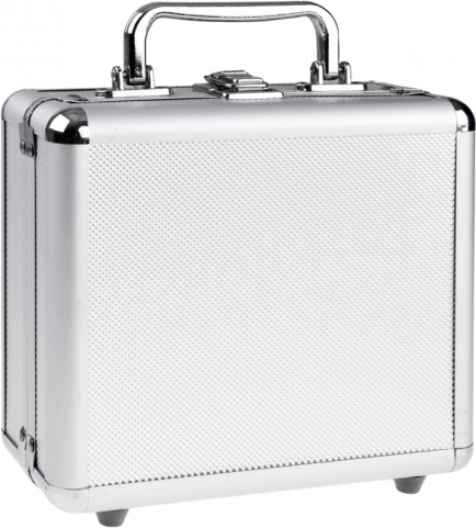 Eleganter Metallkoffer mit schwarzer Samtauskleidung für stilvolle Aufbewahrung.