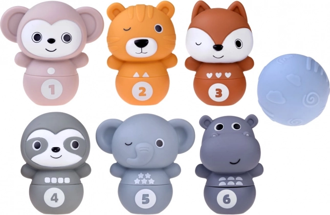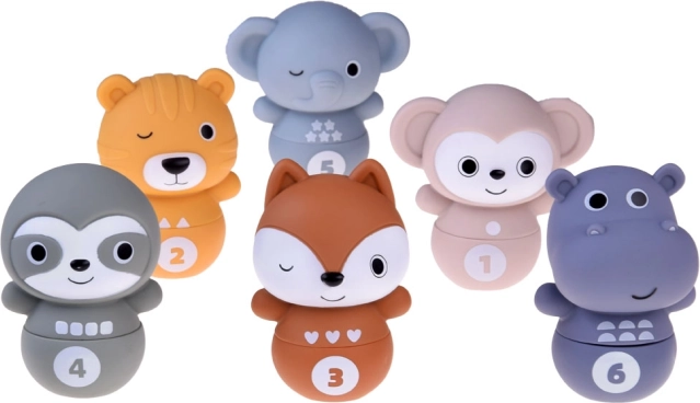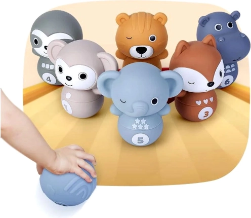 Das Spielzeug Bowling mit Zoo-Tieren bringt Kindern Freude am Spielen und lehrt sie gleichzeitig neue Fähigkeiten. Jedes Tier hat auf dem Bauch die Zahlen 1-6 sowie geometrische Formen, die beim Lernen und Erkennen helfen.