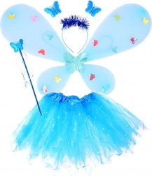 Dieses wunderschöne Feenkostüm in Blau macht jedes kleine Mädchen glücklich. Das Kostüm beinhaltet einen Rock mit LED-Lichtern, Flügel, ein Stirnband und einen Zauberstab und bietet ein magisches Erlebnis für jeden Anlass.