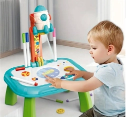 Wecken Sie die kindliche Fantasie mit dem Projektionstisch Kosmos. Dank des Projektors in Raketenform werden Bilder auf die Fläche oder an die Wand projiziert, die Kinder leicht nachzeichnen und richtige Strichführungen lernen können. Das Spielzeug fördert Kreativität, Feinmotorik und Konzentration – ideal für Kinder ab 3 Jahren.